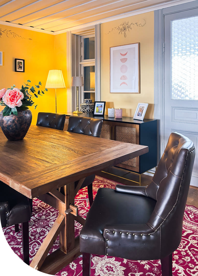 Carolinas konstnärliga själ genomsyrar hennes stil och hem. Hon är inte rädd för att använda färg vilket syns både i hennes konst och hennes stil hemma