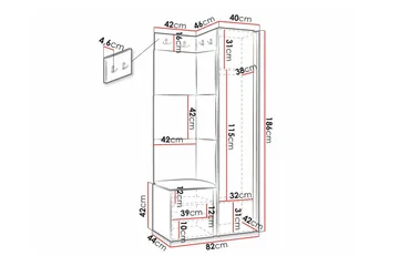 - Mått: B:82 cm H:186 cm D:46 cm