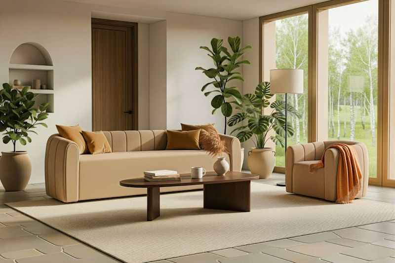Beige soffaSvarta soffbord