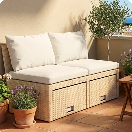 Kvadratsmarta utemöbler för balkonger i olika storlekar