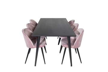 Polar Matgrupp 180 cm Rektangulär med 6 Velvet stolar, Svart