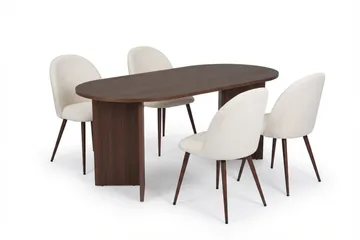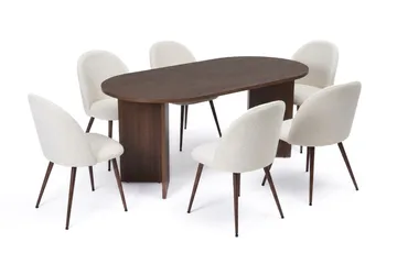 Kopparbo Matbord 200-260 cm Förlängningsbart med illäggsskiv med 8 Filip Matstolar, Vit / Taupe Bouclé