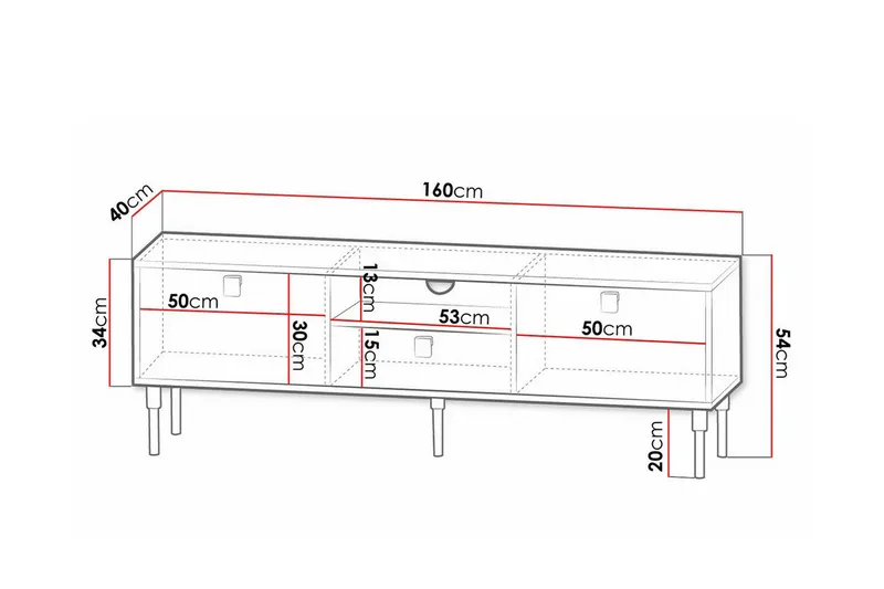 • Mått: B:160 cm H:54 cm D:40 cm