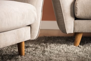 2-sits soffan Trend Lyx är en mycket bekväm soffa med retroinspirerad design i nordiskt formspråk. Det sofistikerade tyget i kombination med de vinklade benen i trä ger ett lyxigt intryck. En soffa som är lika bekväm som stilren. I den här trendiga soffan sitter du skönt långa stunder, tack vare kallskum i plymåerna.