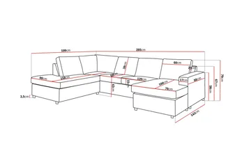 • Mått: B:283 cm H:85 cm D:198 cm