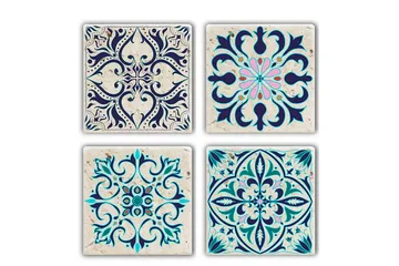 Glasunderlägg 4-pack, Mörkblå/Flerfärgad