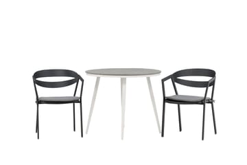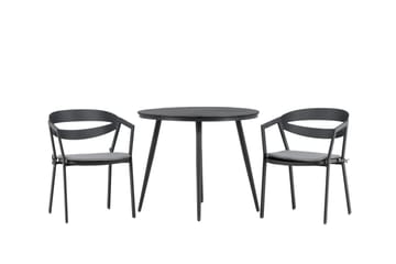 Break Cafégrupp Rund 90 cm + 2 Lindos Karmstol, Svart/Grå