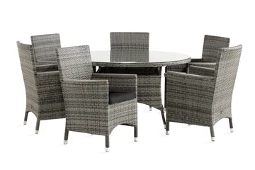 Thor Matgrupp Utomhus Ø140 + 6 Fåtölj Lyx m Armstöd, Grå/Aintwood