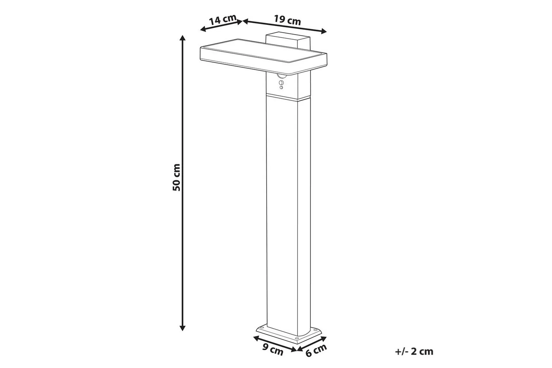 Minimalistisk stolplampa med rörelsesensor. Tänd din trädgårdsgång med den här eleganta, moderna stolplampan. Den här miljövänliga solcellslampan drivs av solen och laddas under dagen och tänds automatiskt i skymningen. Ingen kabeldragning krävs och installationen är enkel. Upptäck smart belysning med en rörelsesensor som erbjuder tre ljusstyrkor, så att du kan justera ljuset efter dina önskemål.