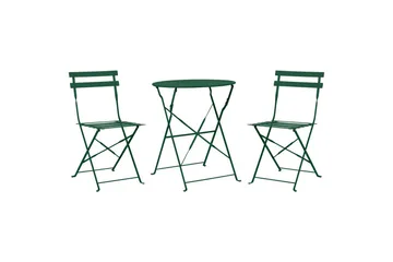 Gröna cafésset är ett smidigt val för mindre uteplatser som balkong, altan eller en liten hörna i trädgården. Setet tar lite plats men räcker gott för fika, frukost eller en stund utomhus.