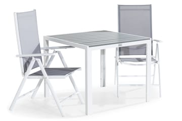 Matgrupp Utomhus Tunis 90x90 + 2 Maggie Positionsstol Vit|Grå