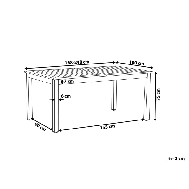 Bordsmått: 168/248x100x75 cm