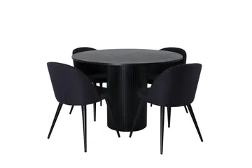 Estelle Matgrupp 140 cm Rektangulär med 4 Polar stolar, Svart