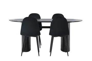 Pluto Matgrupp 120 cm Rektangulär med 4 Tempo stolar, Svart